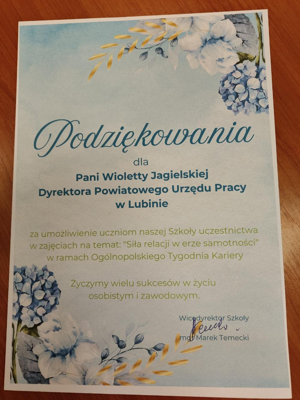 - Panią Ewę Górniak oraz Panią Malwinę Wróblewską z Młodzieżowego Centrum Kariery OHP w Lubinie.