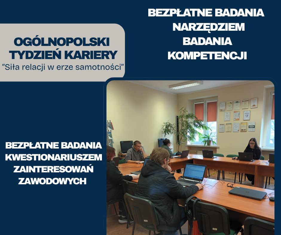 Badania zainteresowań zawodowych. Osoby zainteresowane mogły skorzystać z bezpłatnego badania Kwestionariuszem Zainteresowań Zawodowych oraz Narzędziem Badania Kompetencji.